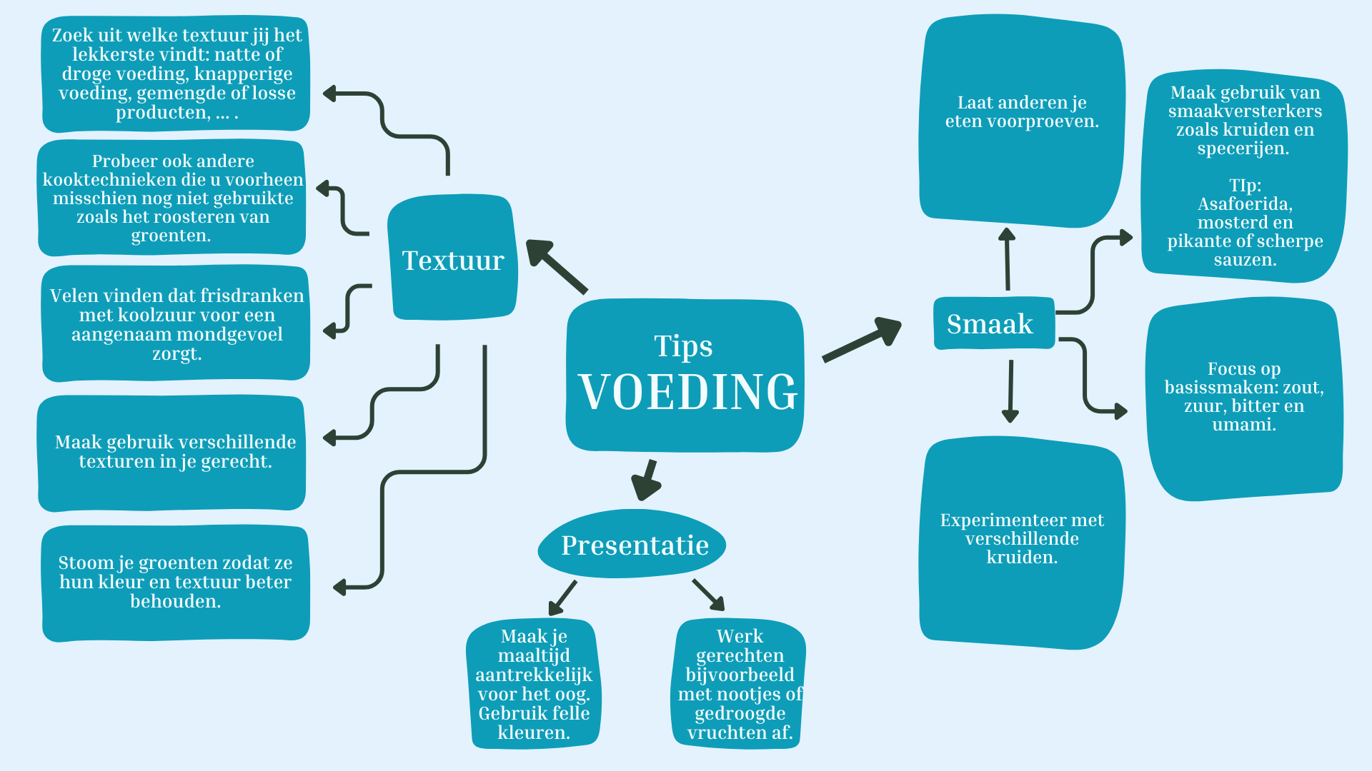 Experimenteer met de verschillende onderdelen van eten en de eetbeleving. Een kant en klare oplossing is er niet en niet alles werkt voor iedereen. Ga daarom zelf op onderzoek uit om te ontdekken wat voor jou werkt. Dit hele proces kan zeker een jaar duren vooraleer je weet wat voor jou helpt, maar goede dingen kosten tijd zeggen ze dan...